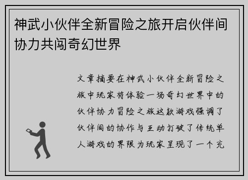 文章摘要:在魔道类游戏中,加点系统是决定角色强度的关键因素之一。合理的加点策略不仅能帮助玩家提高角色的战斗力,还能在游戏中更好地应对各种挑战。本文将从魔道加点系统的基本概念、加点的不同方向与策略、最佳加点方法的选择、以及如何根据职业特性调整加点四个方面进行深度解析,并提供具体的加点策略推荐。通过分析...